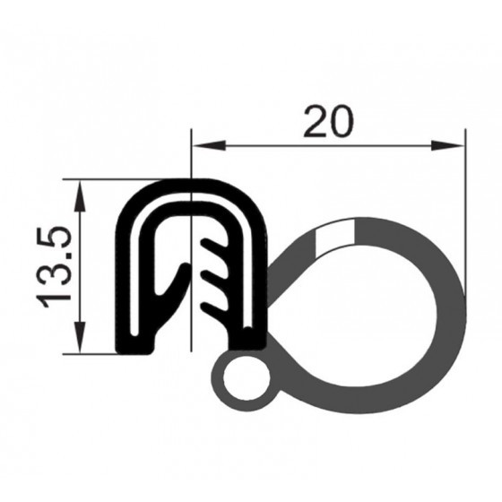 EPDM Rubber Klemprofiel met mosrubber kraal aan de zijkant | 13,5x20mm | klembereik 1,5-3,0mm